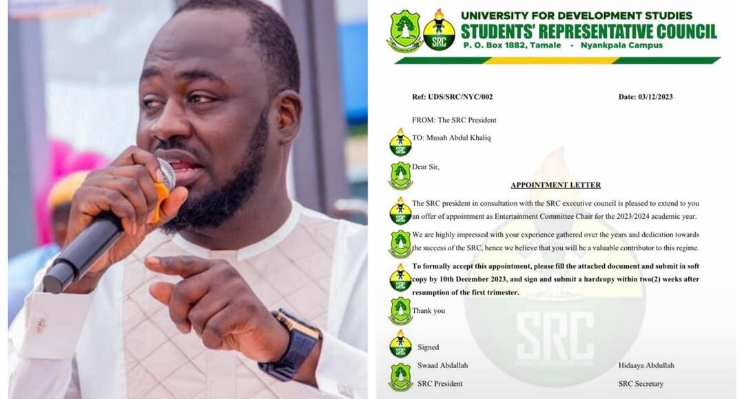 The renowned critic, also a student at Nyankpala Campus, has been appointed Chairman of the Nyankpala Campus Entertainment Committee by SRC President Ms. Swaad Abdallah.